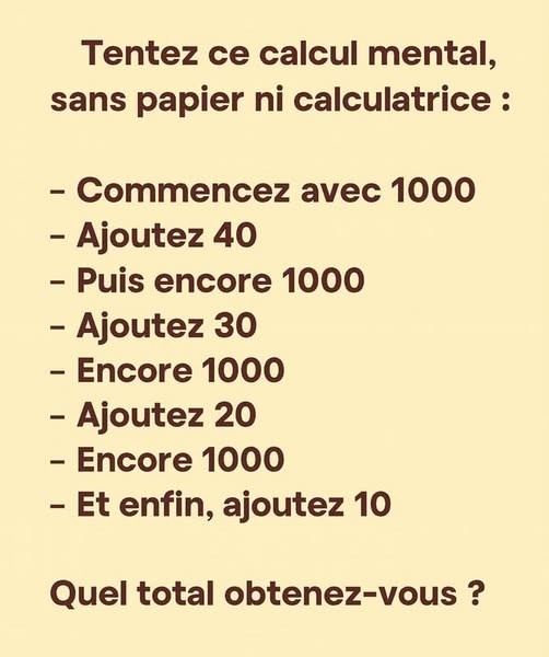 Le défi : faites le calcul dans votre tête